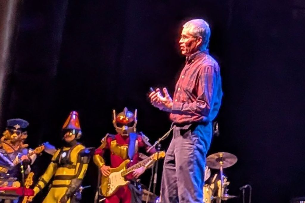 It’s part TED Talk, part variety show. It’s hosted by an astronaut, with many guests, and a costume-clad backing band.